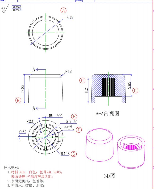 | Diâmetro do eixo: | 6mm | Diâmetro do botão: | 20mm ou para personalizar |
